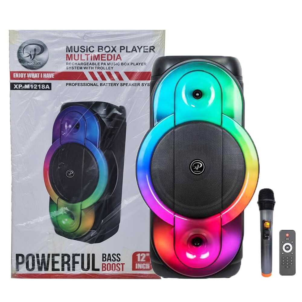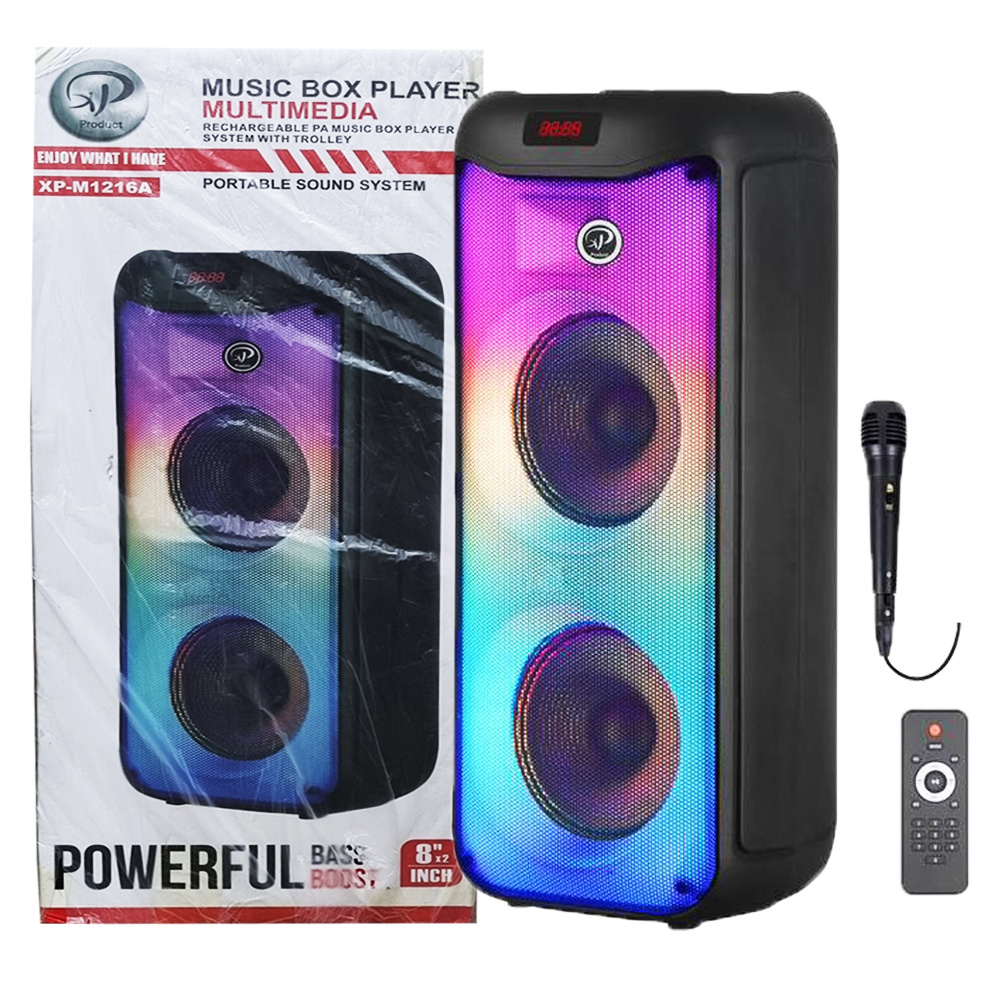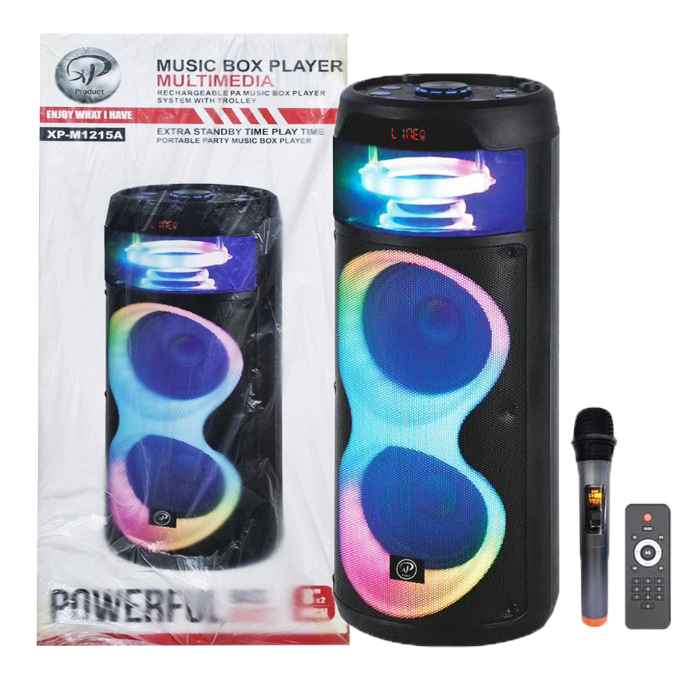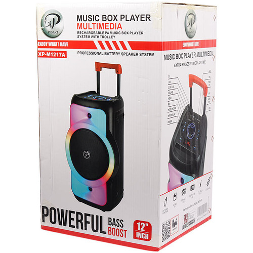 اسپیکر چمدانی بلوتوثی رم و فلش خور XP-Product XP-M1217A + میکروفون و ریموت کنترل