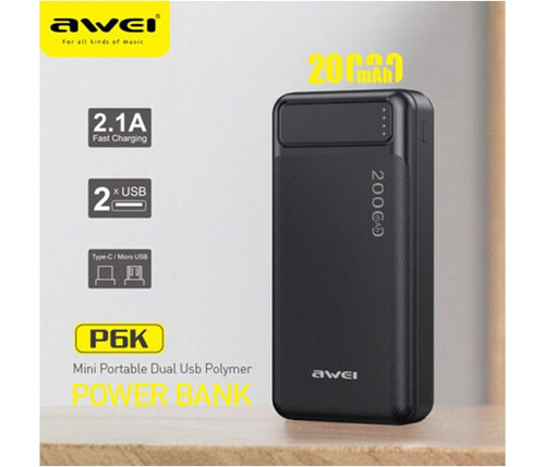 پاوربانک اوی مدل AWEI P6K LED 20000mah سفید